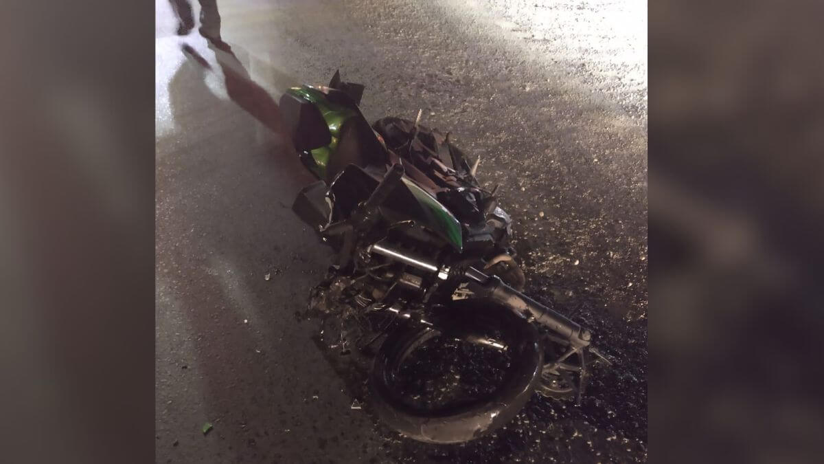 O episódio foi registrado na altura do bairro Pamplona, Km 145, disse a Polícia Rodoviária Federal (PRF). Não foi informado o que causou a batida, apenas que houve a colisão traseira. Com o impacto, a Kawasaki ficou completamente destruída.