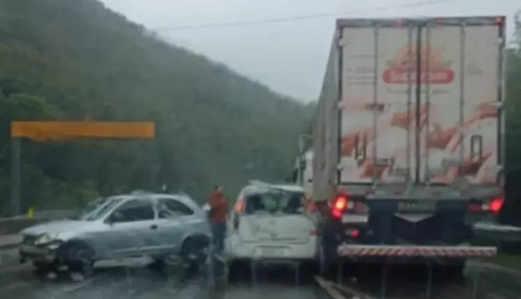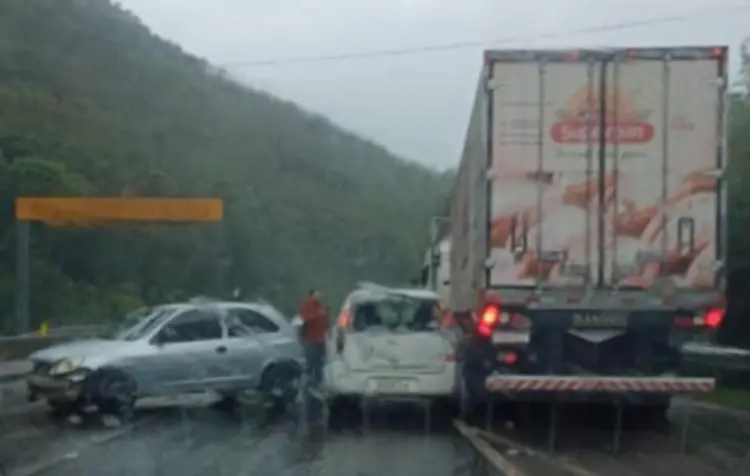 Segundo a Guarda Municipal de Trânsito, os veículos colidiram um atrás do outro no km 233,8, na altura do Morro dos Cavalos.