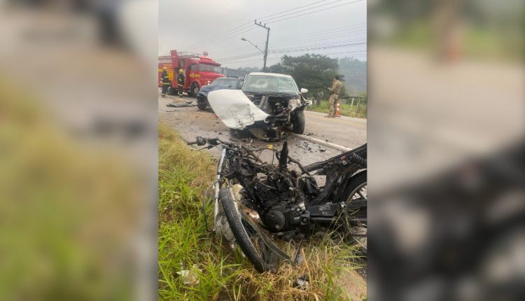 ILHOTA – Um homem e uma mulher morreram na manhã desta quarta-feira (12) em um acidente na Rodovia Jorge Lacerda, em Ilhota, no Vale do Itajaí. Eles estavam em uma moto que se envolveu em uma colisão com outros dois carros, cujos motoristas precisaram ser levados ao hospital.
