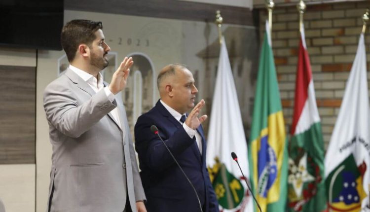 BRUSQUE – André Vechi (DC) e Deco Batisti (PL) foram empossados durante sessão na Câmara de Vereadores de Brusque no começo da noite desta segunda-feira (25). Esse é o último ato estabelecido pela Justiça Eleitoral para que a dupla assuma em definitivo o Executivo Municipal como prefeito e vice eleitos por voto popular. A diplomação de ambos já havia ocorrido na semana passada.