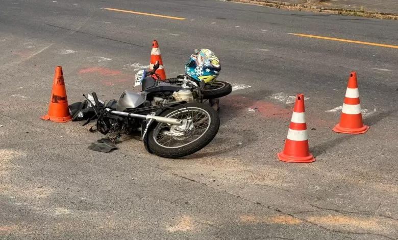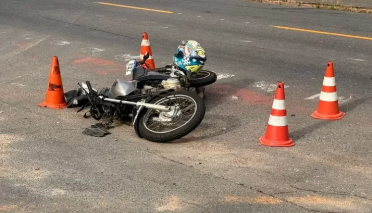 A colisão envolveu um caminhão, com placas de Doutor Pedrinho, e uma motocicleta Honda CG.