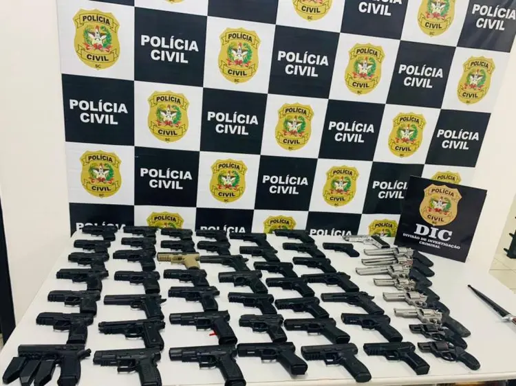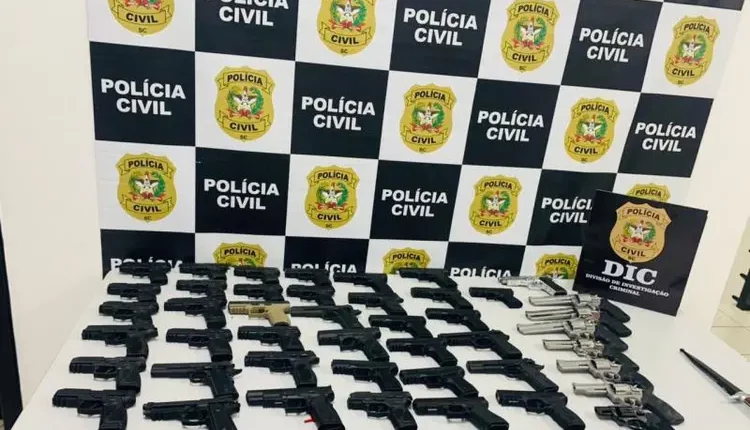 NORTE SC – Um arsenal foi recuperado pela Polícia Civil após o furto de uma loja de armas em Brusque, no Vale do Itajaí. O crime aconteceu na manhã desta quarta-feira (19) e mobilizou uma verdadeira força-tarefa para recuperar o armamento, que foi levado por dois criminosos. O material foi localizado horas depois em Joinville, Norte do Estado.