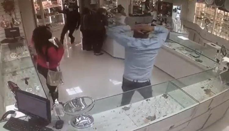 Em um determinado momento, dois homens armados entram no local e anunciam o assalto. A vendedora até tenta esconder o mostruário, mas um dos criminosos pula o balcão e toma o objeto. O prejuízo é estimado em cerca de R$ 100 mil.