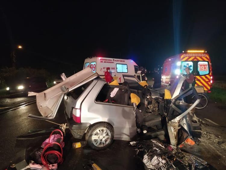 NORTE SC – As três mulheres que morreram no acidente na BR-280, em Araquari, na noite de terça-feira (14), eram avó, mãe e filha e voltavam de um culto religioso quando o veículo que ocupavam foi atingido por outro carro. As vítimas foram identificadas como Lucilia da Silva, 84 anos, Sandra Regina Campos, 51, e Isabelle Corrêa da Silva, 14. A identidade das vítimas foi confirmada pelo filho de Lucilia nas redes sociais.