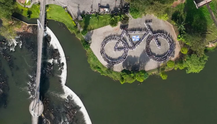 SANTA CATARINA – Timbó se tornou a capital nacional do Cicloturismo. E para comemorar a nomeação, a cidade construiu uma bicicleta humana formada por 1.253 alunos da rede municipal. A titulação foi publicada no Diário Oficial da União na quinta-feira (24).