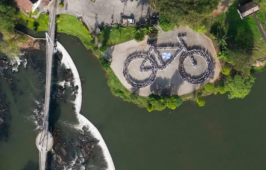 SANTA CATARINA – Timbó se tornou a capital nacional do Cicloturismo. E para comemorar a nomeação, a cidade construiu uma bicicleta humana formada por 1.253 alunos da rede municipal. A titulação foi publicada no Diário Oficial da União na quinta-feira (24).