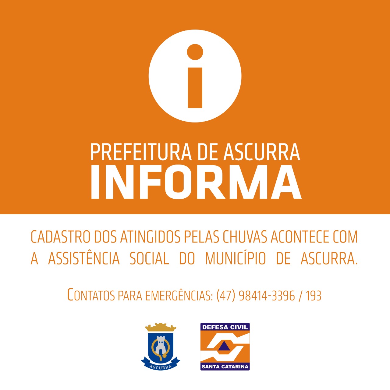 Defesa Civil de Ascurra – (47) 98414-3396.