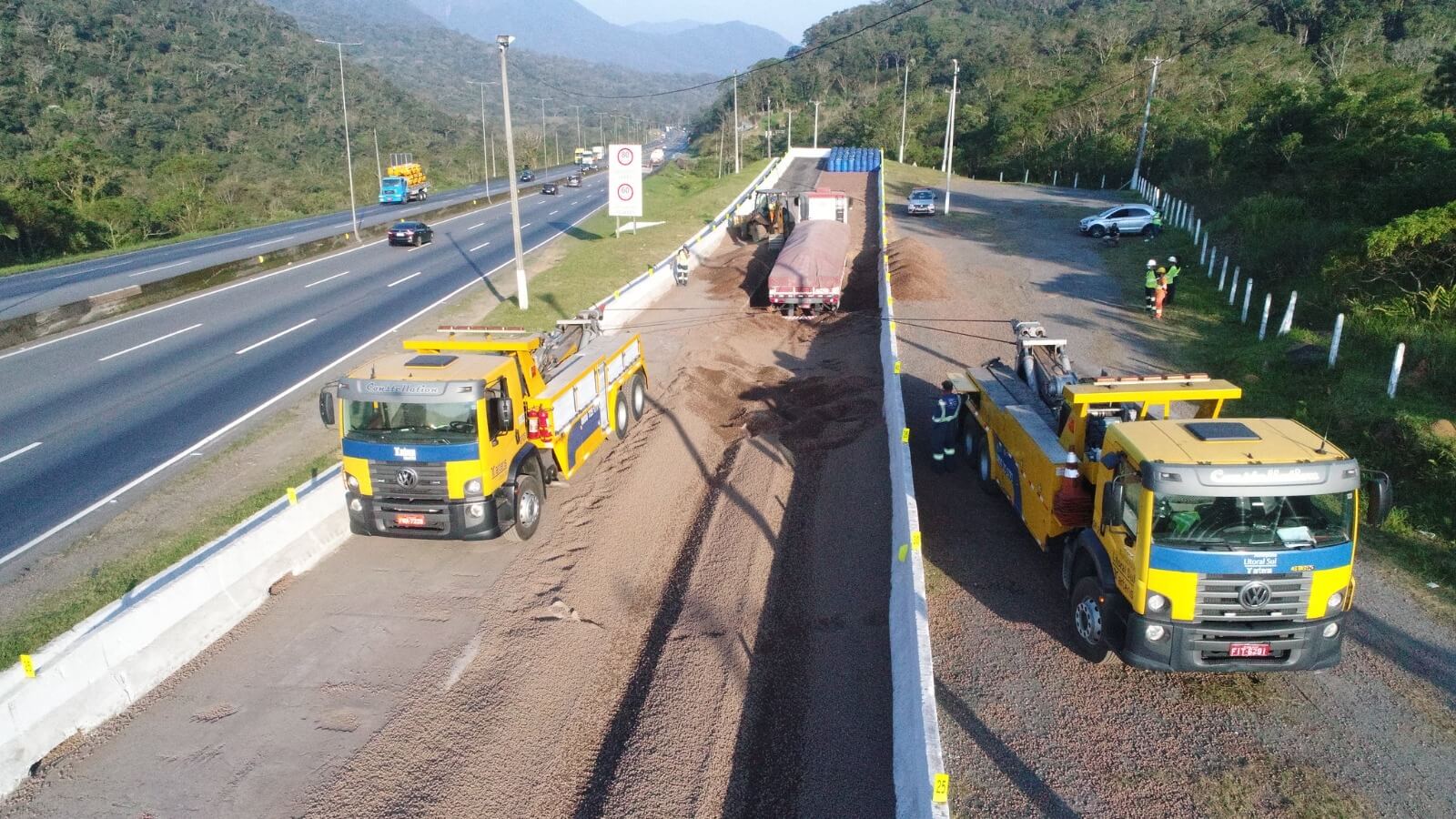 Conforme a Arteris Litoral Sul, o veículo estava carregado com soja e ficou sem freios na rodovia que liga o Paraná ao Norte catarinense. Para evitar um acidente, o motorista entrou na área de escape.