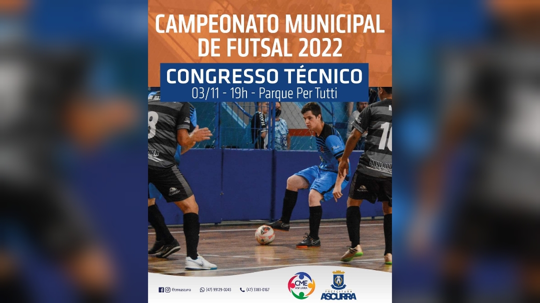 As inscrições para participação do Campeonato Municipal de Futsal 2022 estarão abertas até o dia 03 de novembro, data que acontece o Congresso Técnico do certame, às 19h, no Parque Per Tutti. Neste encontro, cada equipe deve estar representada por um membro para confirmar sua participação. A rodada de abertura da competição está programada para o dia 11 de novembro, no Ginásio Municipal de Esportes Padre Francisco Costa, localizado no Parque Per Tutti.
