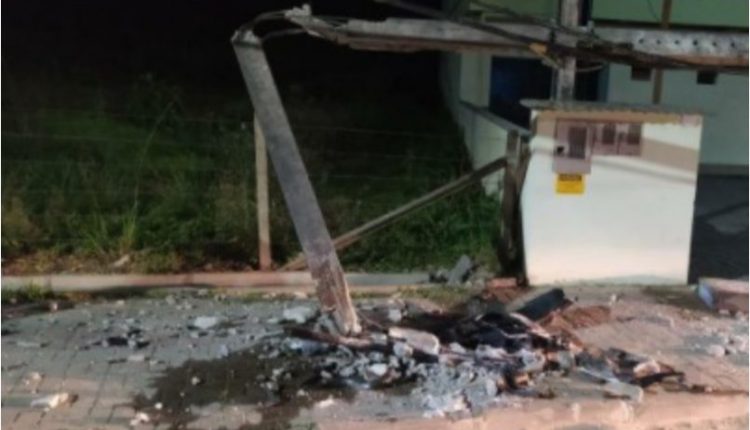 Carro colide contra poste e foge do local no Bairro Estada das Areias em Indaial