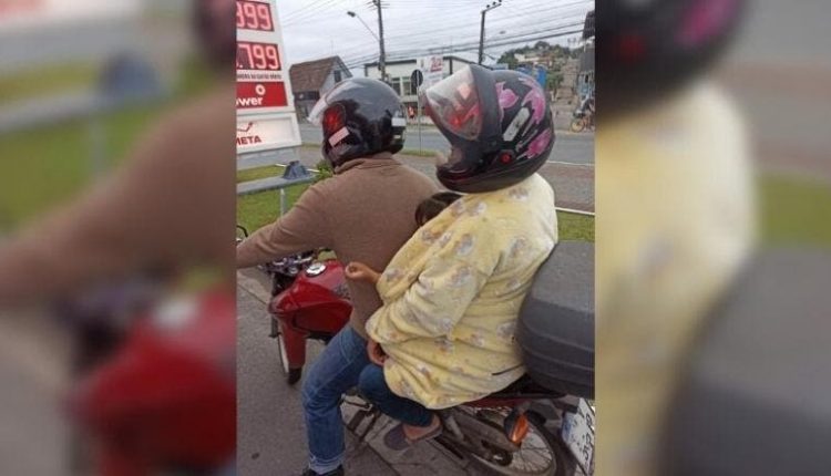 BLUMENAU – Um ato de pura irresponsabilidade foi flagrado na tarde deste domingo (12) pela Guarda Municipal de Trânsito (GMT) em Blumenau. Um casal trafegava pela cidade de moto levando uma criança de apenas três anos no colo. O caso ocorreu na Rua Dois de Setembro, uma das mais movimentadas da região Norte da cidade.