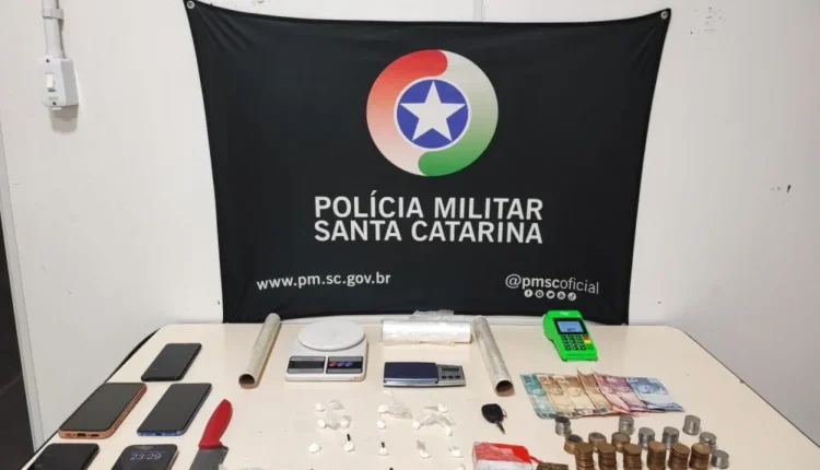 Com o casal, a polícia apreendeu uma balança de precisão, plástico filme, um rolo de sacolas plásticas transparentes, 88 gramas de cocaína, 8 gramas de maconha, dois aparelhos celulares e um veículo Peugeot 207 HB XR.
