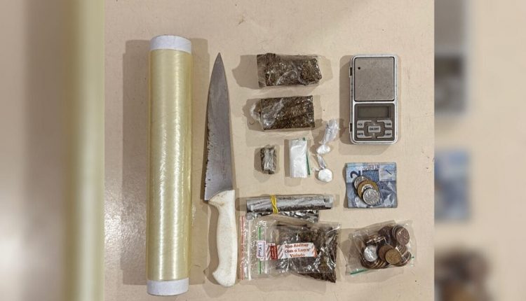 Dentro da casa do suspeito, a PM localizou diversas substâncias ilícitas e materiais utilizados na preparação e comercialização de drogas. Os policiais apreenderam aproximadamente 130 gramas de maconha, cinco gramas de cocaína, uma grama de skank, além de R$ 13,80 em espécie.