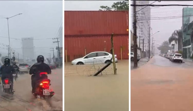 Chuva forte provoca alagamentos em Itajaí e Balneário Camboriú e faz ruas virarem rios