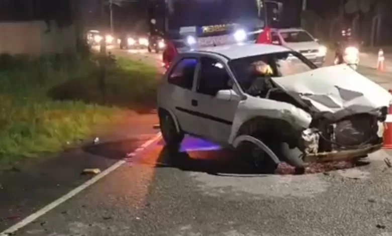Colisão entre dois carros deixa quatro pessoas feridas, em Indaial domingo(26)