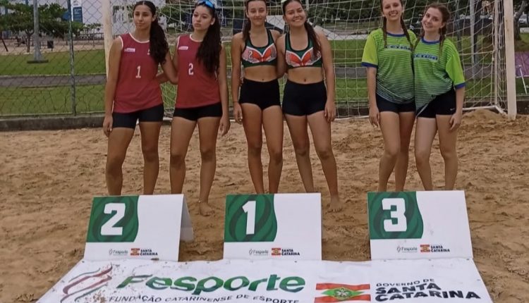 RODEIO – As atletas Amanda Dalmolin e Maysa Camargo, subiram no lugar mais alto do pódio, ao conquistar a modalidade do vôlei de praia, da etapa micro regional do Jesc.