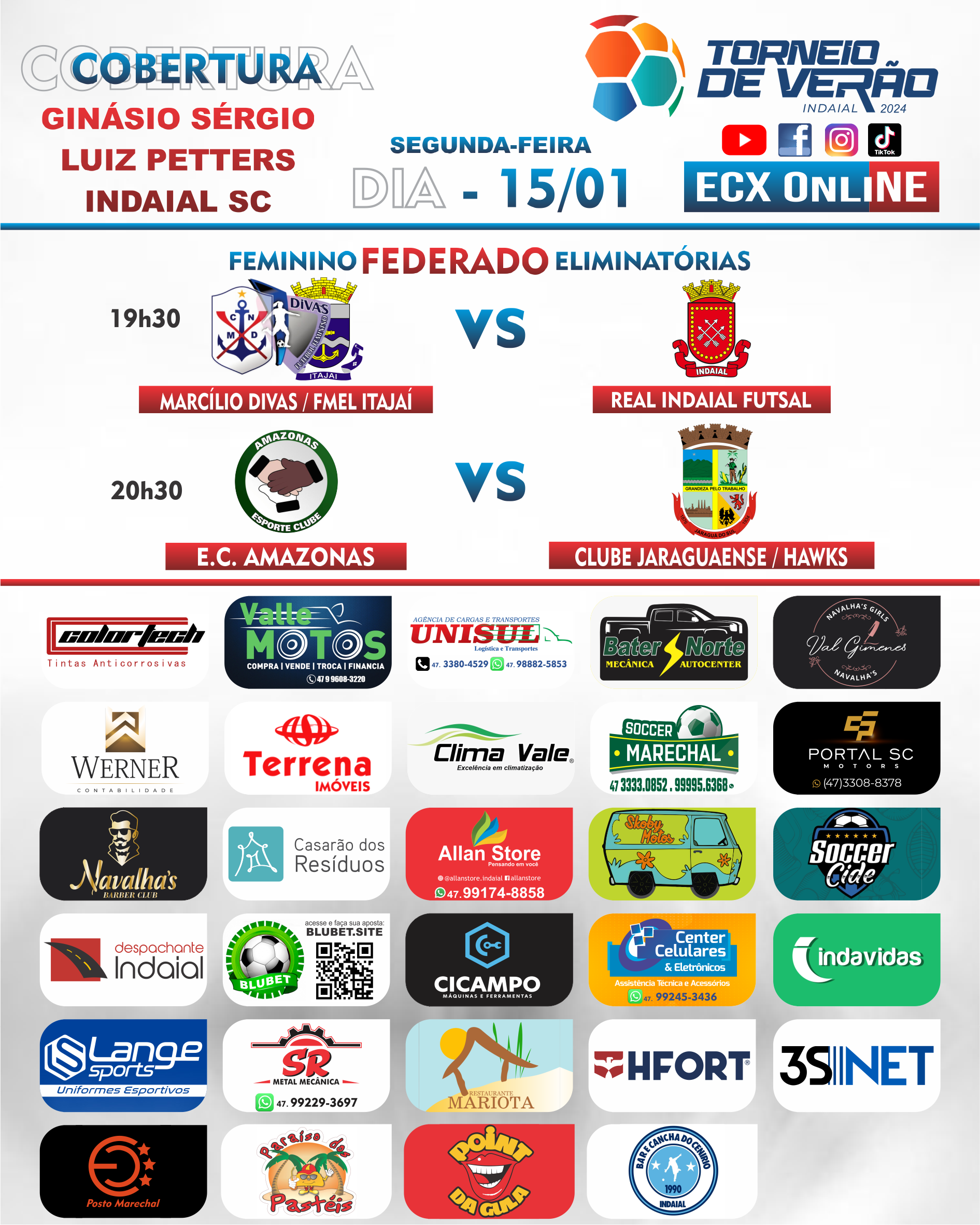 Os confrontos eliminatórios acontecem nesta segunda-feira (14/01/2024) no Ginásio Sérgio Luiz Petters, a partir das 19h30, com cobertura em tempo real da ECX Online.
