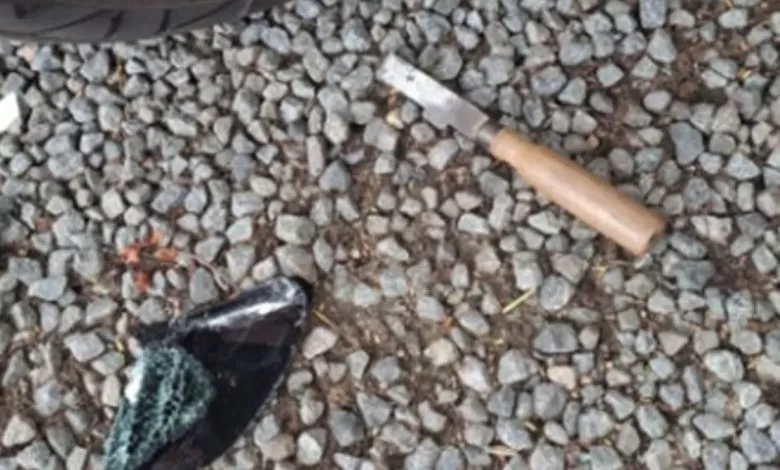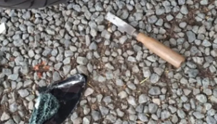 Nas proximidades do veículo danificado, a guarnição localizou um formão de marceneiro, ferramenta que pode ter sido utilizada para quebrar o vidro e facilitar o acesso ao interior do automóvel.