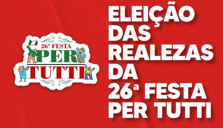 ASCURRA – A eleição das novas Princesas e Rainha da Festa Per Tutti acontece nesta sexta feira (14). Junto ao evento, terá a tradicional feirinha.