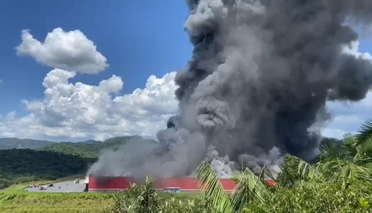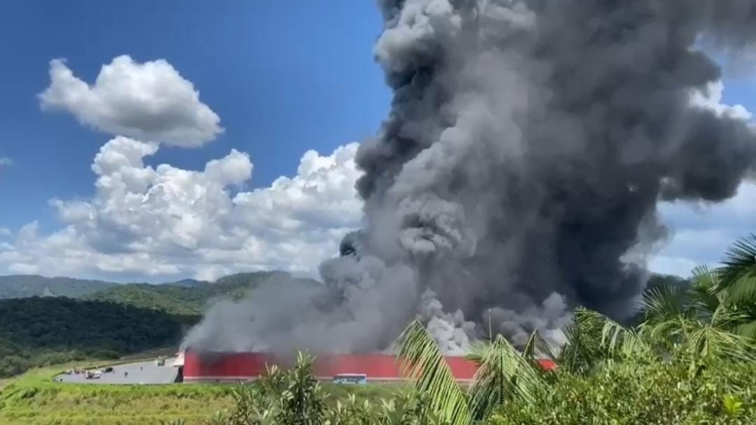 Grande incêndio atinge galpão da Fischer em Brusque e fumaça é vista a quilômetros