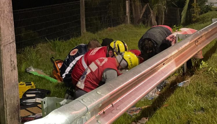 No local, a equipe encontrou uma motocicleta Honda CG/Titan 125cc que havia colidido contra um guard-rail. O condutor, um jovem de 24 anos, foi encontrado com suspeita de politraumatismo. A operação de resgate contou com o apoio do SAMU.