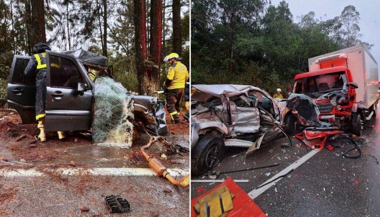 Duas colisões graves deixaram três pessoas mortas na BR-282, em Santa Catarina, neste sábado (28). Os acidentes aconteceram nas cidades de Águas Mornas e Santo Amaro da Imperatriz, por volta das 16h. Entre as vítimas de um dos acidentes estão um pai e filho que transitavam pela rodovia juntos.