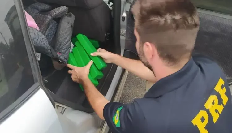 Ao realizar inspeção, a PRF se deparou com tabletes de maconha espalhados no carro, inclusive sob a cadeirinha de transporte da criança.