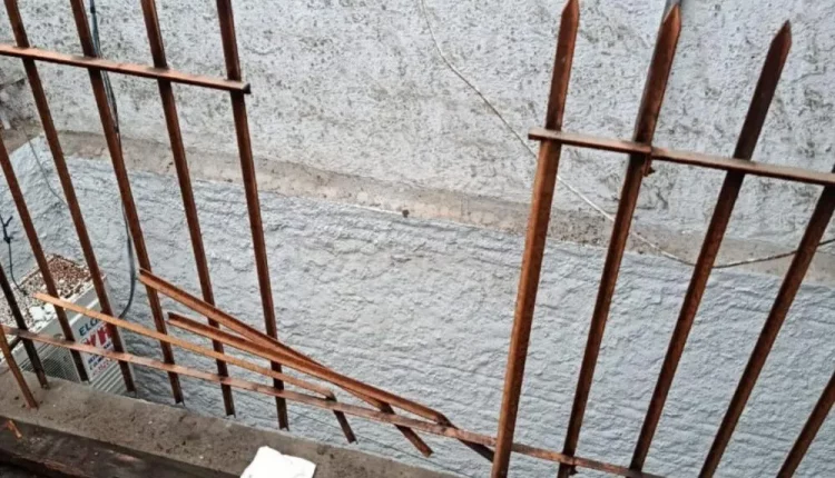 Homem cai de telhado e fica preso em grade com ferros no Alto Vale