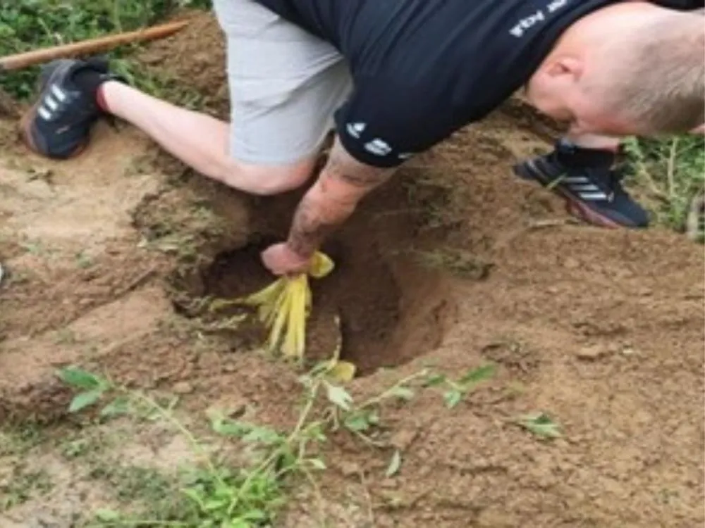 A PM encontrou uma cova aberta próxima à margem do rio, no local indicado pelo próprio homem. A equipe da Causa Animal e a Defesa Civil foram acionadas e, após a abertura da cova, foi constatado a morte dos dois cães. Conforme avaliação técnica, os animais apresentavam ferimentos na região da cabeça e estavam envoltos em sacos plásticos.