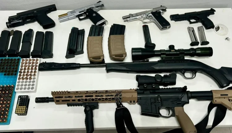A ocorrência de tentativa de feminicídio terminou com a apreensão de um arsenal de armas, incluindo pistolas, fuzil, carabina e centenas de munições, após a Polícia Militar atender a um chamado por disparos de arma de fogo.