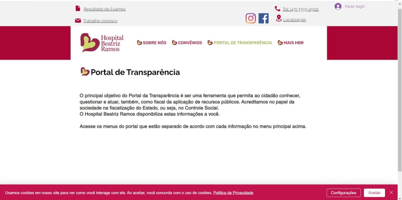 Com a criação do novo site, as postagens referentes ao Portal de Transparência, antes feitas no site oficial da prefeitura, passarão a ser feitas no site do hospital. Serão divulgadas as Demonstrações Contábeis, Relatórios de Atividade e Relatórios de Auditorias atualizados desde a data de início da intervenção, em março de 2019. Além disso, no Portal de Transparência do site da prefeitura será disponibilizado um link, em Hospital Beatriz Ramos, que irá direcionar ao portal na página do novo site do hospital.