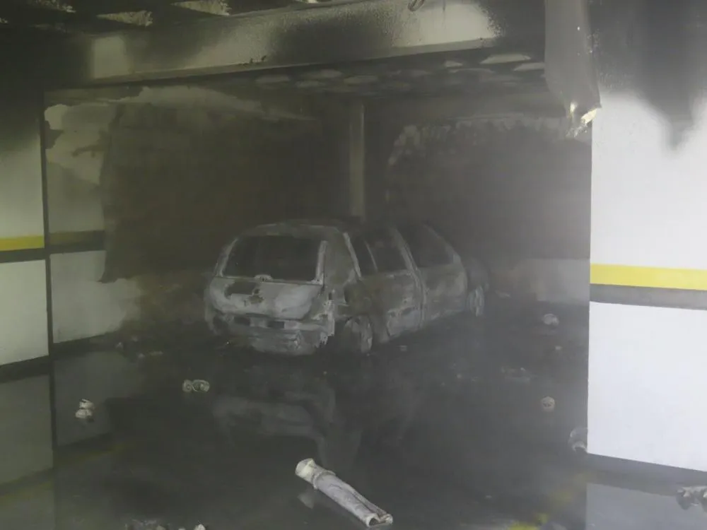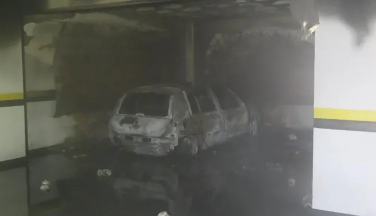 Incêndio destrói carro em garagem de condomínio de Blumenau