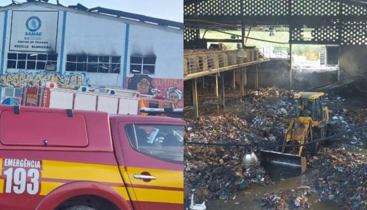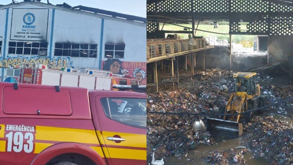 BLUMENAU – Um incêndio destruiu materiais, máquinas e comprometeu a estrutura da Cooperreciblu, a cooperativa de reciclagem de Blumenau. O fogo começou na madrugada deste domingo (16) e foi controlado pelos bombeiros militares depois de três horas de combate. Ninguém se feriu.