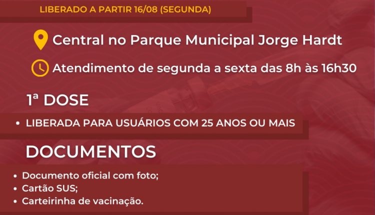 Indaial – A partir desta segunda, 16 de agosto, a Secretaria de Saúde de Indaial libera a vacinação contra a Covid-19 para pessoas com 25 anos ou mais. É preciso apresentar carteirinha de vacinação, Cartão do SUS e documento oficial com foto.