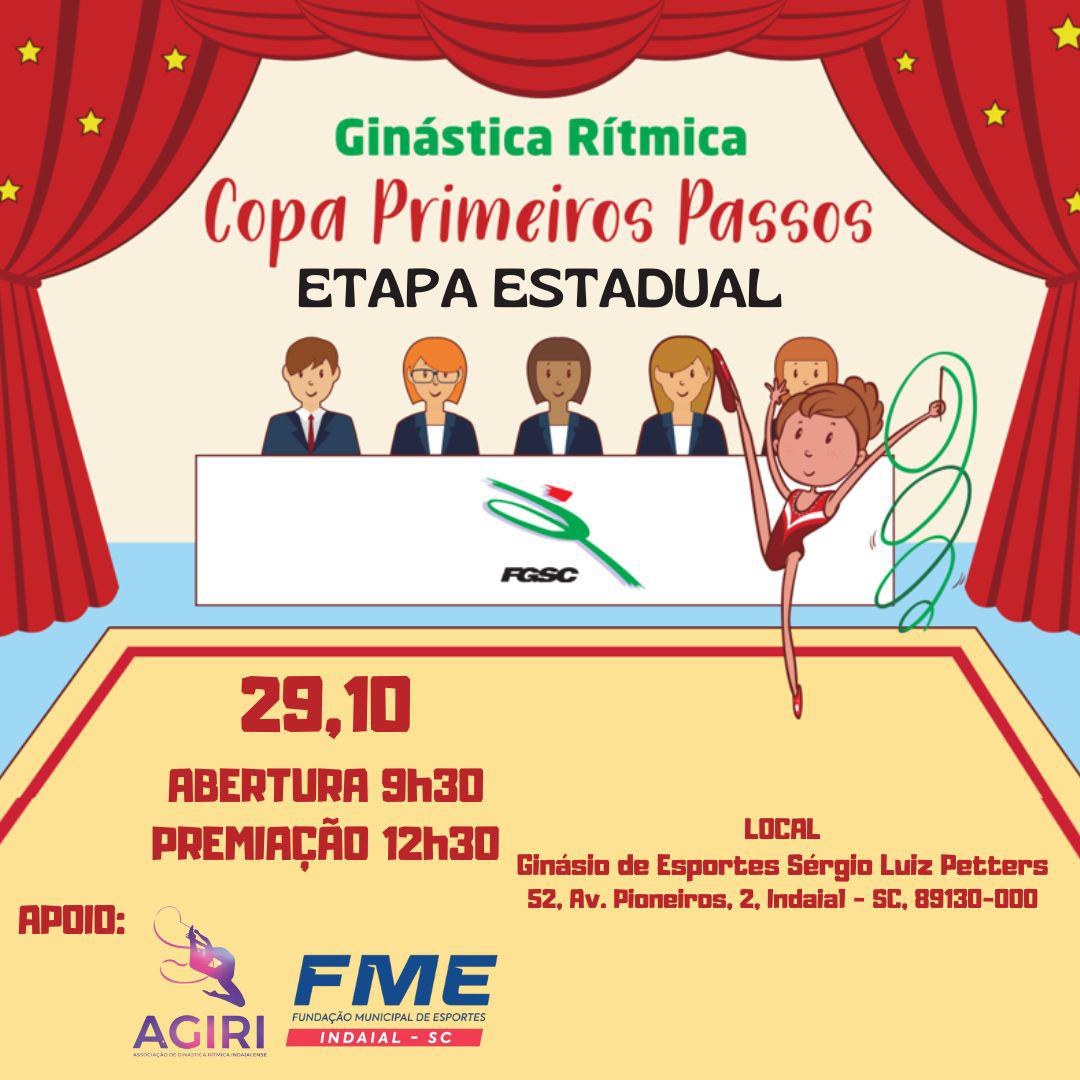 INDAIAL – O Município de Indaial sedia neste sábado, 29 de outubro, a Copa Primeiros Passos – Etapa Estadual, a Copa Estreantes e a Copa SC de Conjuntos de Ginástica Rítmica. A competição acontecerá no Ginásio de Esportes Sérgio Luiz Petters, localizado na Av. Pioneiros, 2, Centro.