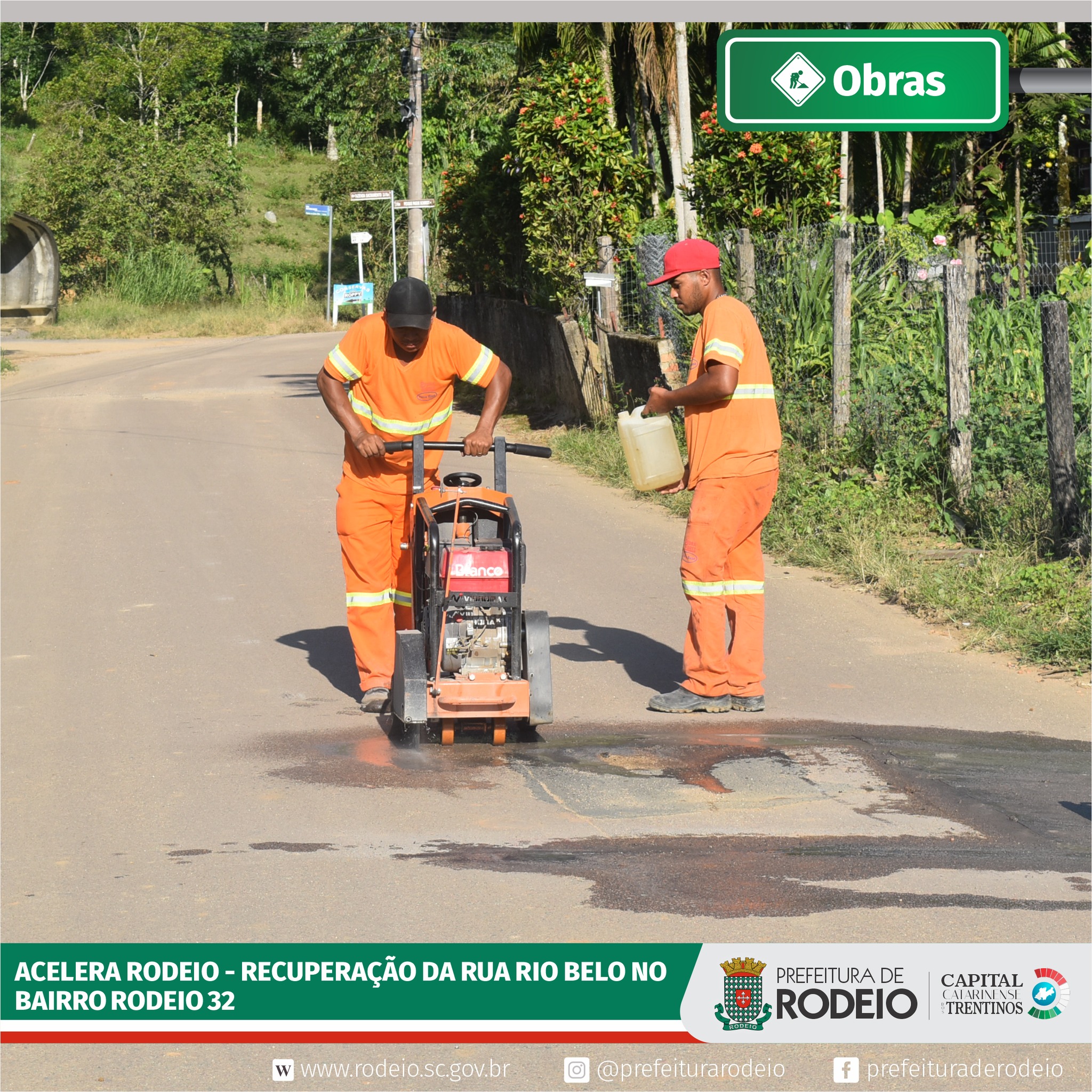 RODEIO – A Prefeitura de Rodeio através de sua Diretoria de Obras e Setor de Planejamento iniciou nesta quarta-feira (11/05) a recuperação asfáltica da Rua Rio Belo no Bairro Rodeio 32. Também segue a pavimentação da Rua Vitório Zermiani no Bairro Nova Brasília e da Rua Gottfried Heimann no Bairro Rodeio 12. Estas são obras contempladas pelo programa Acelera Rodeio.