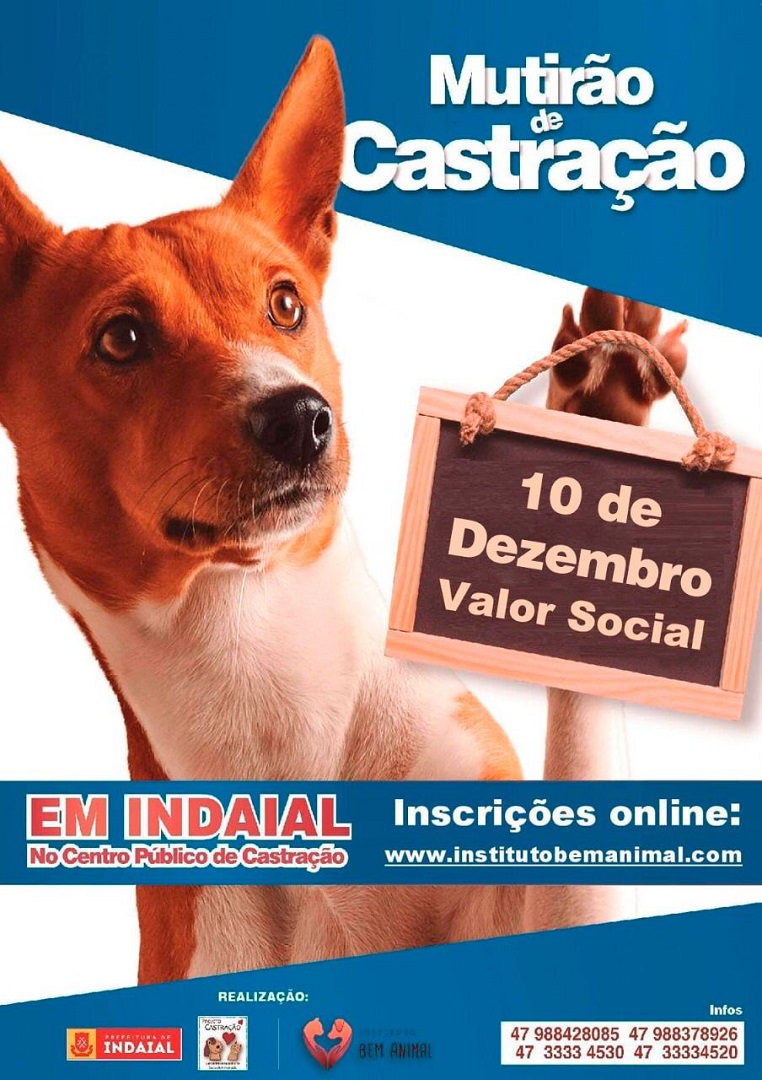 INDAIAL – Seguem abertas as inscrições para o nono e último Mutirão de Castração Animal de 2022, uma parceria da Prefeitura de Indaial com o Instituto Bem Animal. A ação acontecerá no sábado de 10 de dezembro. Gatos e cães poderão ser castrados. No caso de cães, as exceções são para as raças pug, bulldog, pequinês e lulu-da-pomerânia. A cirurgia ocorrerá no Centro Público (rua Marechal Deodoro da Fonseca, 4.600).