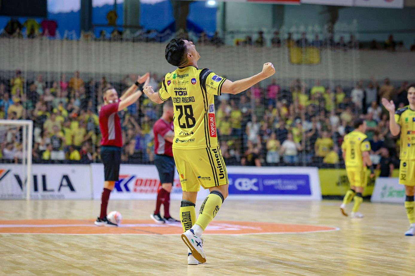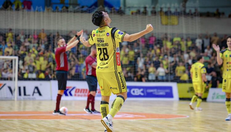 FUTSAL – O Jaraguá deu um passo importante no sonho de voltar à final da Liga Nacional. Com quase 7 mil torcedores na Arena, o Aurinegro se impôs diante do Atlântico e venceu o jogo de ida da semifinal por 3 a 1 neste sábado (15).