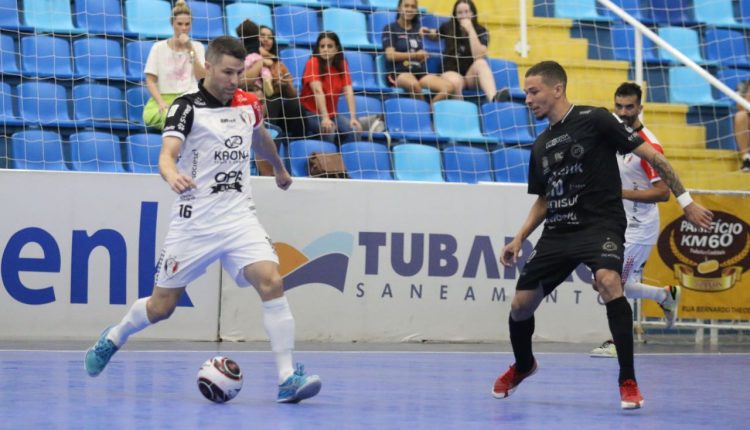 FUTSAL – Defendendo a invencibilidade de 20 jogos no Campeonato Catarinense de Futsal, o JEC/Krona foi derrotado pelo Tubarão, fora de casa, no primeiro duelo das semifinais da competição. O pivô Daniel Alves marcou o único gol da partida para a equipe do Sul. Agora, o Joinville precisa vencer o duelo de volta no tempo normal para forçar a prorrogação, onde tem a vantagem do empate. O jogo ocorre no domingo, às 19h, no ginásio do SESC, em Joinville.