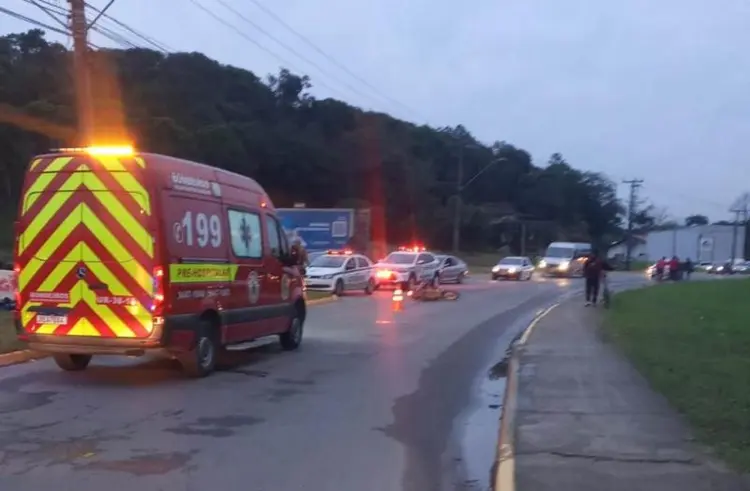 Segundo o Corpo de Bombeiros Voluntários, o condutor da motocicleta colidiu com um caminhão e foi arremessado na pista. A equipe de socorro chegou ao local, mas a vítima estava em parada cardíaca.