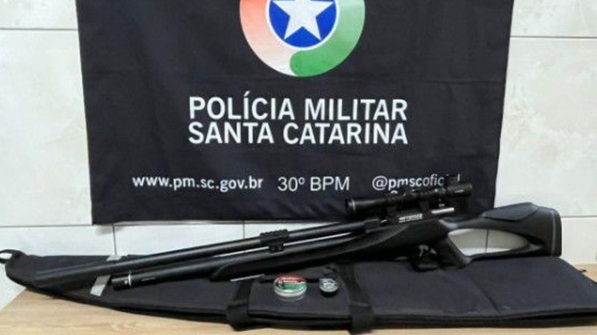 foi detido pela Polícia Militar na tarde desta segunda-feira (1º), após ser flagrado atirando contra aves silvestres com uma arma de pressão.