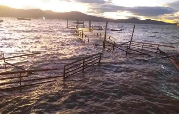 Maré alta destrói deck e causa alagamentos no Norte de SC