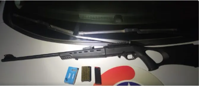 • Um rifle (registrado no nome do autor);