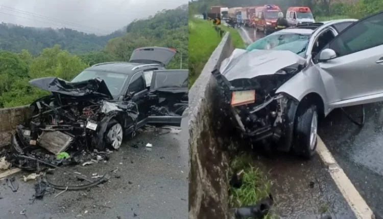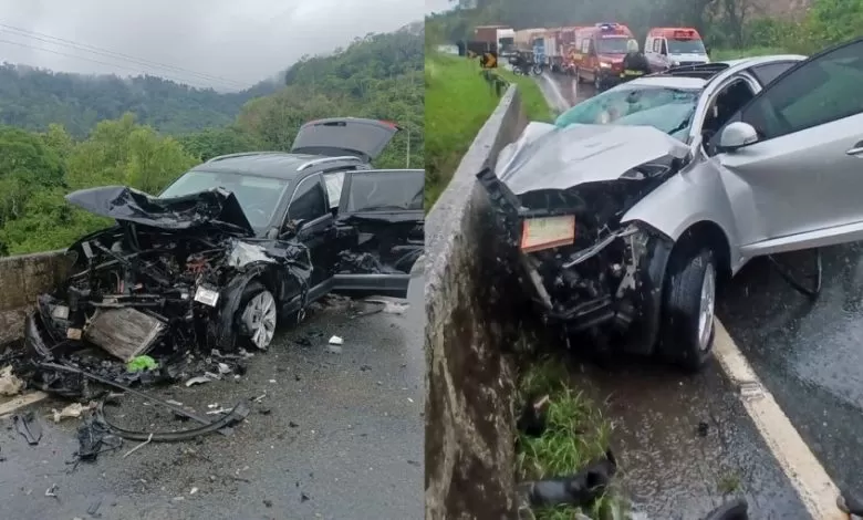 Motorista é arremessado para fora do carro após colisão frontal na BR-470, em Rodeio