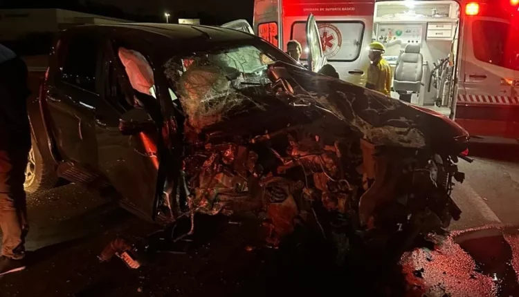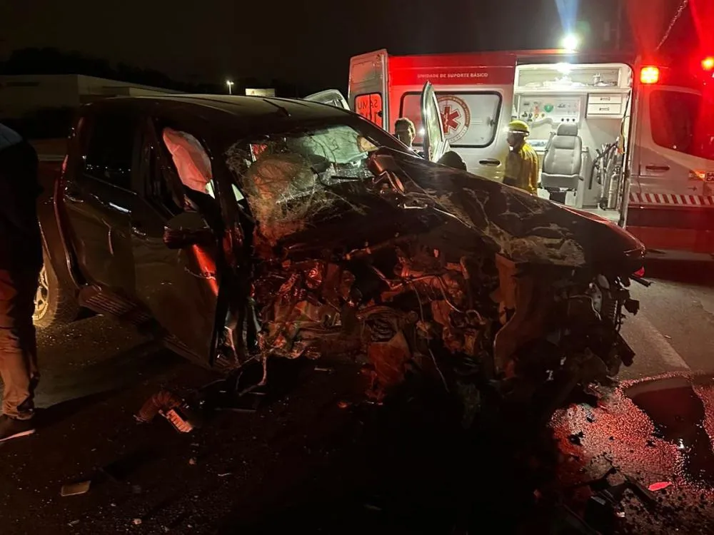 O motorista, de 39 anos, não sofreu ferimentos aparentes e permaneceu no local. Além dos bombeiros, a Polícia Rodoviária Federal (PRF) também esteve na cena do acidente.