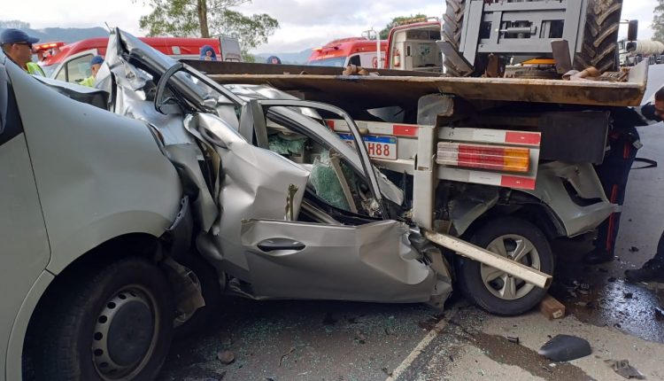 Mulher escapa por milagre de acidente na BR-470 após carro ser completamente esmagado