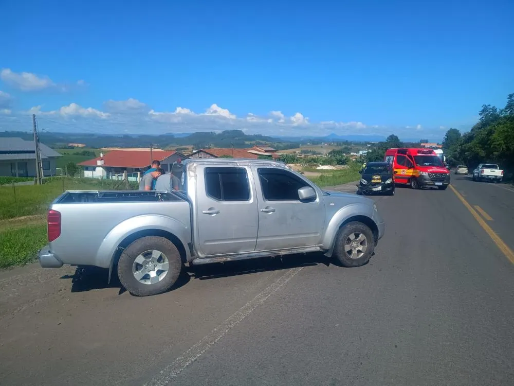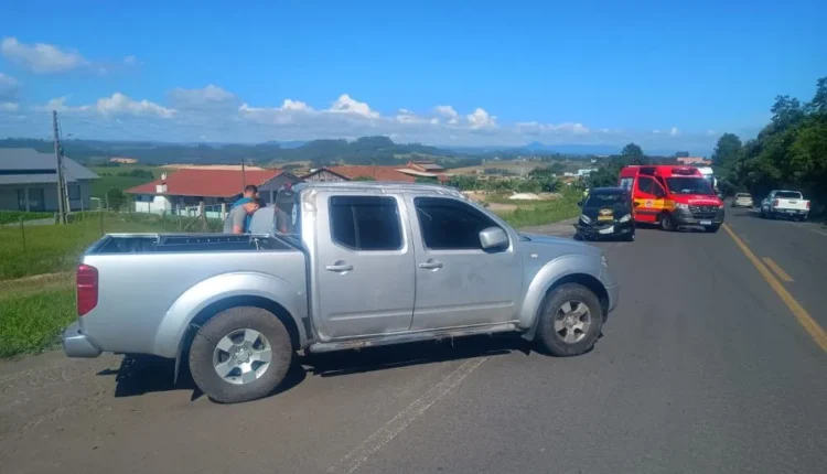Mulher fica ferida após acidente entre caminhonete e carro na BR-470, no Alto Vale