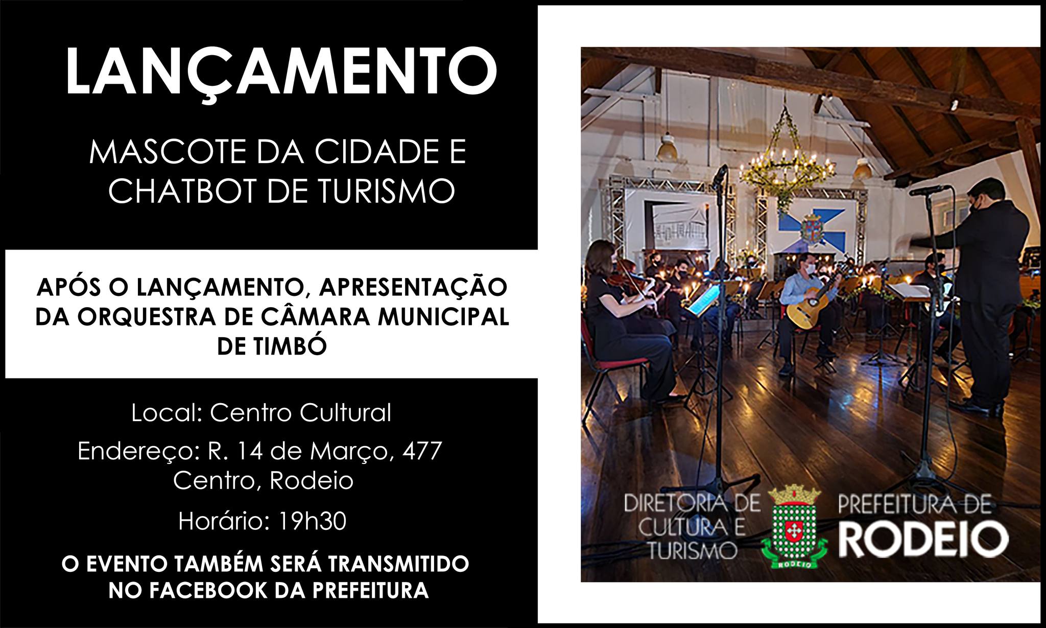 Nesta quarta acontece o lançamento do MASCOTE GÈPPE, CHATBOT DE TURISMO “O TRENTINO” E A ORQUESTRA DE CÂMARA MUNICIPAL DE TIMBÓ