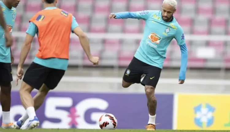 FUTEBOL – O atacante Neymar saiu machucado do treino da seleção brasileira na manhã desta quarta-feira (1º) e virou dúvida para o técnico Tite para o amistoso de amanhã (2) contra a Coreia do Sul, às 8h (horário de Brasília), na capital Seul. De acordo com Rodrigo Lasmar, médico da seleção, o camisa 10 sofreu um trauma no pé direito, após levar um pisão durante disputa de bola. O pé machucado é o mesmo que o jogador já lesionara em há três anos.