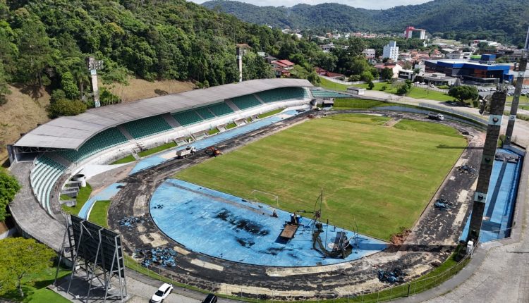 FUTEBOL – As obras estão a todo vapor para melhorias do Estádio do Sesi para receber jogos da Série B do Campeonato Catarinense. Os trabalhos ganharam força na última semana e começaram pela retirada da pista sintética de atletismo que estava repleta de bolhas e de outras falhas ao longo de toda extensão. Na sequência, haverá a ampliação das dimensões do gramado e, também, toda a reforma de vestiários e outras estruturas não visíveis aos torcedores.